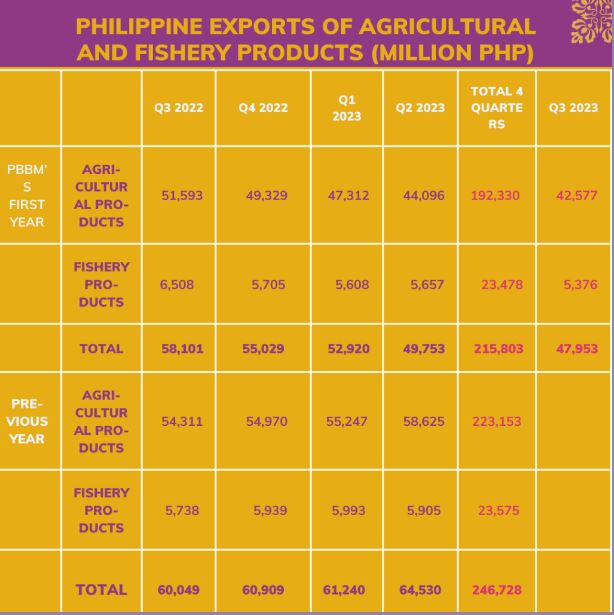 This substantial decline in export value is a cause for concern and raises questions about the effectiveness of Marcos’ strategies in promoting and expanding agricultural exports, Monsod wrote. Notably, the negative trend persisted into his fifth quarter, with agriculture exports continuously falling, in stark contrast to the previous year’s increasing trend.